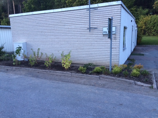 Det som blivit planterat i rabatten är blommande buskar som är rådjurssäkra och lättskötta. När buskarna vuxit till sig så kommer de
